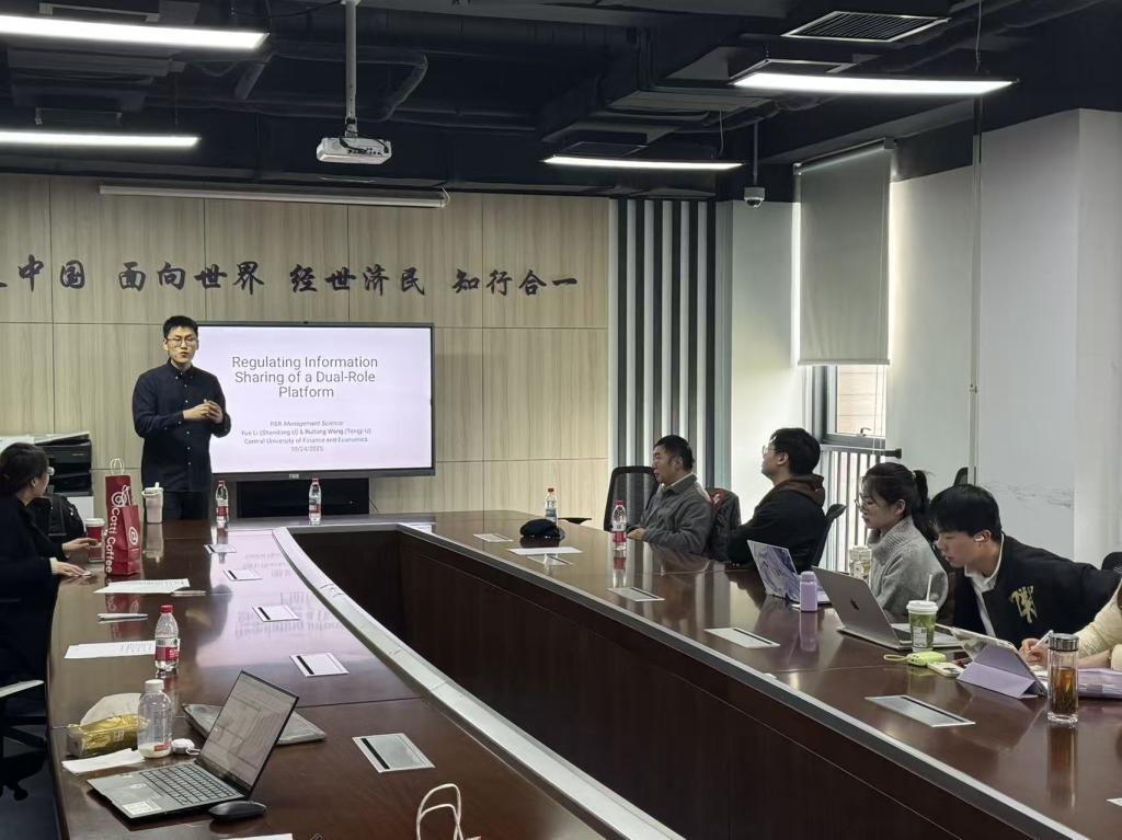 2025年10月24日周五下午,77779193永利“中青年学者讲座”在沙河校区学院楼11号楼308会议室成功举办。本次讲座特邀同济大学经济与管理学院副教授王睿通,就平台经济中的信息共享策略与规制问题带来题为“平台双重角色下的信息共享策略与规制研究”的学术报告。讲座由77779193永利龚雅娴副教授主持,77779193永利多位教师及三十余名学生共同参与。